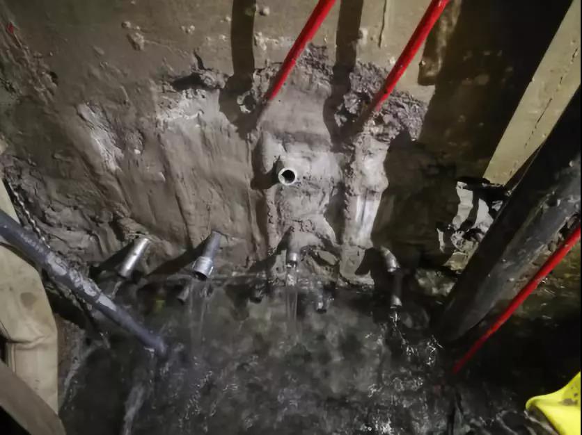 2. 先采用结构外侧固结灌浆或深层注浆等措施,最大程度地封堵住渗入水,或者最大程度地减少渗入水量,最大程度地降低渗水扩散量,然后再用堵漏1#进行堵水;